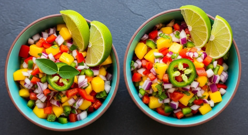 - Mango Salsa: Fresh mango, red onion, jalapeño, and plenty of lime juice.