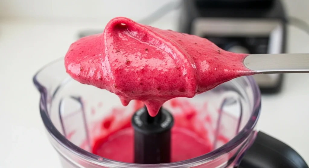 Do not rush the blend. Start slow. If you blast it on high immediately, the fruit will get stuck to the sides and you will be forced to add too much liquid.