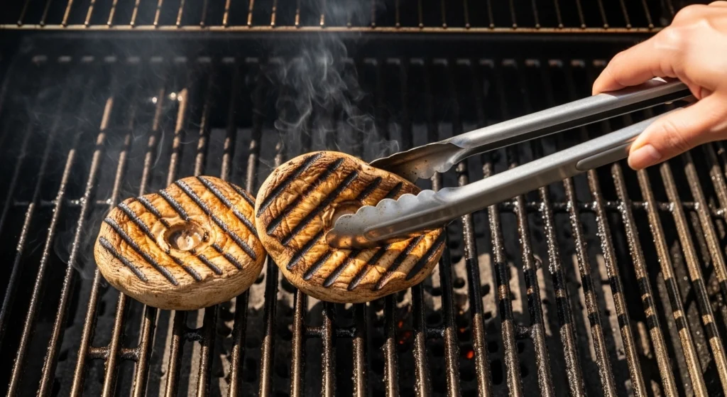 - Grill: Place the mushrooms directly on the hot grates, stem side up. Grill for 5-7 minutes.
