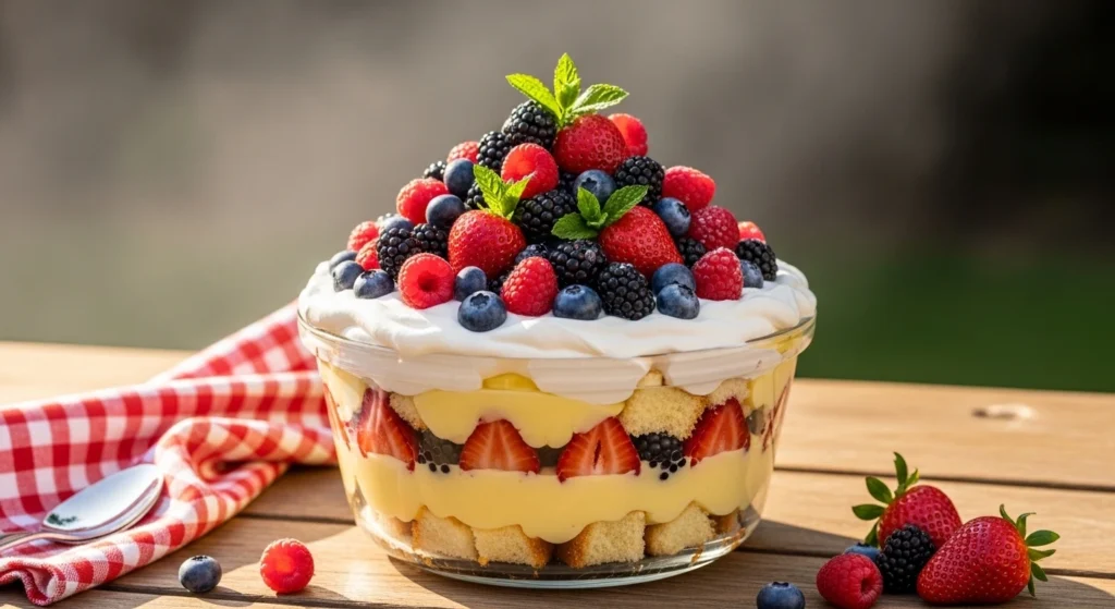 I needed a dessert that was cold, refreshing, and completely stunning. I decided to layer fresh berries, cool cream, and soft cake in a giant glass bowl.