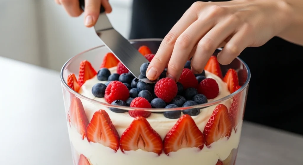 Overfilling the dish: Make sure you leave enough room at the top of your glass bowl for that final, fluffy layer of whipped cream and the berry garnish.