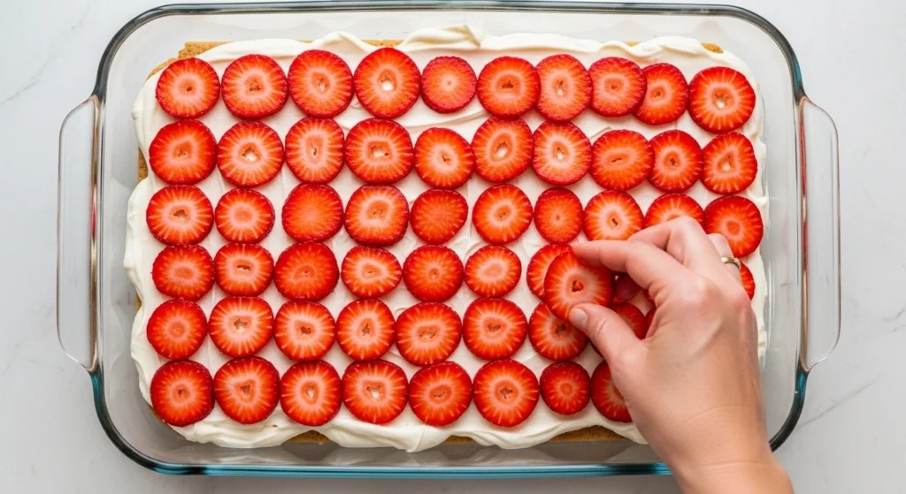 - Add Fruit: Top the cream with a layer of thinly sliced strawberries. This creates a beautiful no bake strawberry dessert profile.