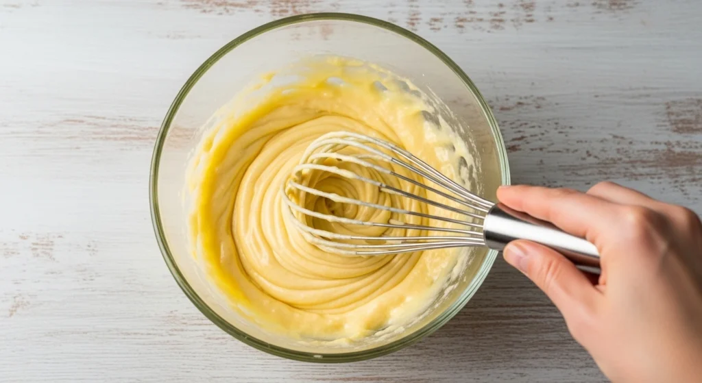 Wet Ingredients: Whisk the melted butter into the lemon sugar until smooth. Add the eggs, lemon juice, and vanilla extract, whisking until perfectly combined.