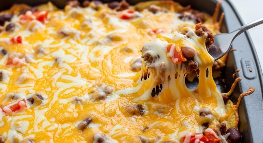 Skipping the Canned Cheese: You cannot use regular shredded cheese for the bottom layer. It will stick to the metal pan. The processed nacho cheese is required for the sliding trick to work.