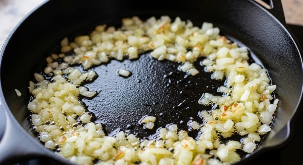 - Sauté the Onions: Add your chopped onions to the hot bacon grease. Cook for about 3-4 minutes until they are soft and translucent.