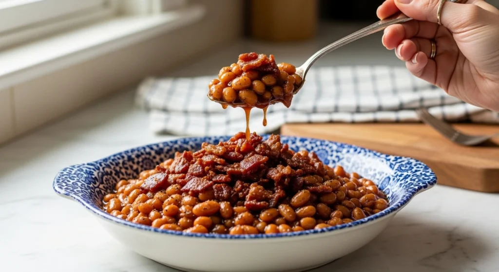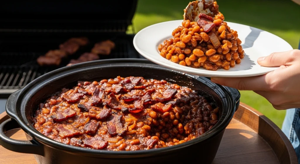 Yes, baked beans are an excellent make-ahead dish! Cooking them a day in advance actually gives the complex flavors—like the molasses, mustard, Worcestershire sauce, and bourbon—more time to meld together. Simply store the cooked beans in an airtight container in the fridge, and reheat them gently on the stove or back in the slow cooker before your BBQ.