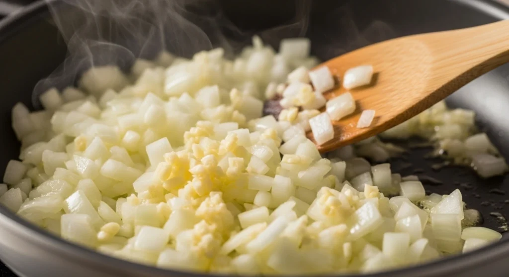 2. Sauté the Aromatics In a small skillet, melt your butter over medium heat. Add the diced onions and cook until they are soft and slightly caramelized. Toss in the garlic for the last 30 seconds.
