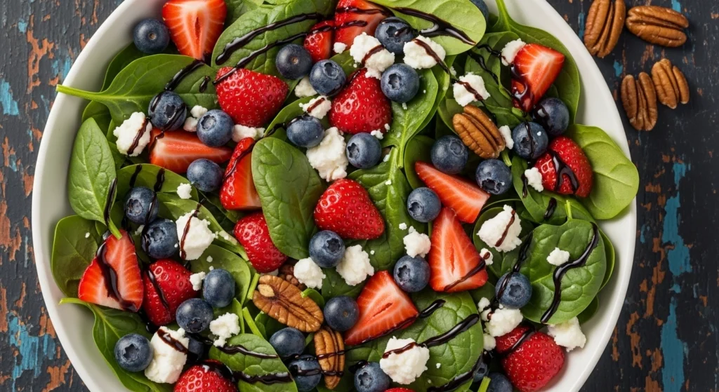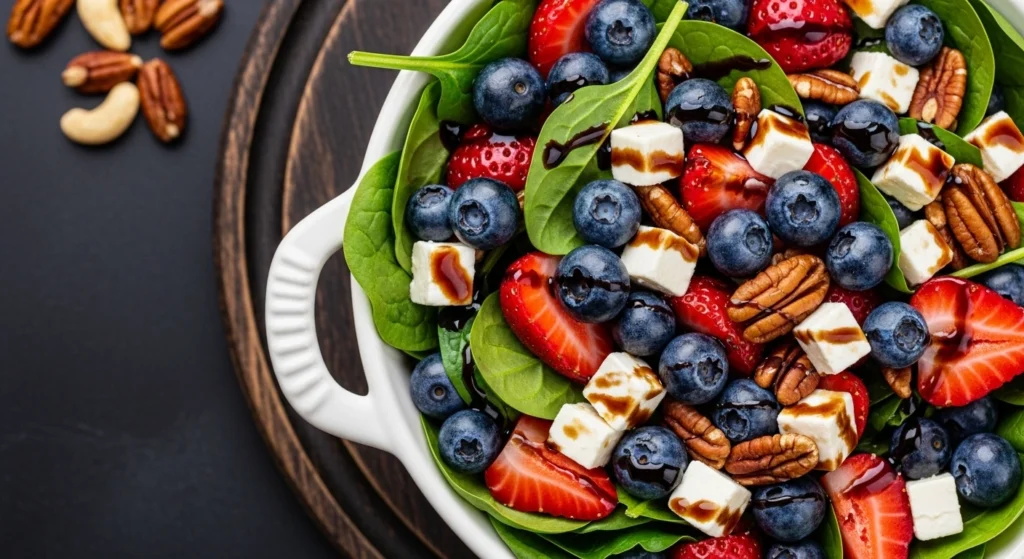 The combination of sweet berries, crunchy nuts, and a tangy dressing is simply irresistible.