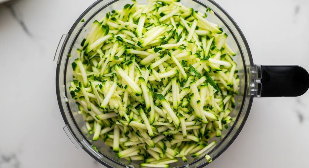 Step 2: Salt and rest. Sprinkle a teaspoon of kosher salt over the grated zucchini. Toss it well. Let the bowl sit on the counter for 15 to 20 minutes. The salt will draw out the hidden water.